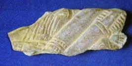 | Description / विवरण | Sculptured architectural fragment depicting probably two pillars having incised line designs flanked by two birds. The head of the bird is very prominent at right side while only part of eye is visible at left side. |