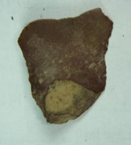 | Description / विवरण | Fragment of stone, irregular in shape with smooth surfaces and one edge has two ridges. |