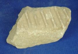 | Description / विवरण | Fragment of stone with one surface having Mauryan polish and others are rough. The side opposite to smoother one is having parallel embossed lines. It is probably part of a Chhatri of Mauryan period. |