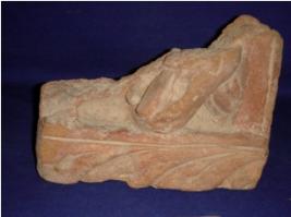 | Description / विवरण | Fragment of a sculptured terracotta brick having floral designs at the bottom and some structure is made in the niche but cannot be identified. |