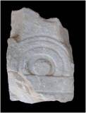 | Description / विवरण | Part of a pillar with chamfered corners on three sides and at the base portion three semi circular medallions emanating from a rectangular band is depicted. |