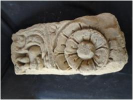 | Description / विवरण | Architectural fragment showing full blown lotus flower and Creeper design. |