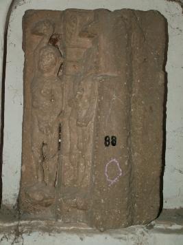 | Description / विवरण | It is an Fragment of Architectural member having two human figures. Both figures are separately placed in corner one figure is defaced and other one s face is also highly eroded. Both figures have highly decorated legs. |