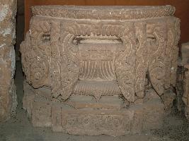 | Description / विवरण | This Fragment of pillar is carved with Ghata Pallava motifs . The pot is decorated with vertical slanting lines, leaves are hanging from the pot. It is also carved with geometrical floral and cripple motifs. It is in high relief and very minutely carved. |