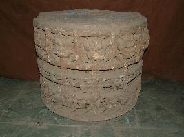| Description / विवरण | This Fragment of Architectural member belongs to a pillar part . It is circular in shape . The upper part is carved with series of Kirtimukhas and the lower part is carved with series of human figures. In between these a horizontal decorative band is carved. |