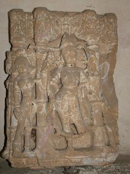 | Description / विवरण | This Fragment of Architecture member is having an image of Shiva depicted in dancing pose, also two female attendants are depicted in his right side. One leg of Shiva is broken. Shiva is shown with conical shaped crown with ornamentation. Another piece is having carved floral designs. |