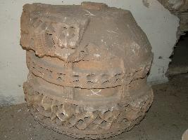 | Description / विवरण | This Fragment of Architecture member, which seems to be a part of pillar is having Kirtimukha. Geometrical pattern is shown in horizontal portion. One line of human figure and bead motif along with floral designs is visible. All have been executed with the help of carving work. |