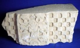 | Description / विवरण | An architectural fragment depicting a floral design in cube on one surface. The floral design is surrounded by checkered designs. The surfaces are plain. |