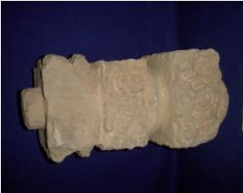 | Description / विवरण | architectural fragment of a pillar having floral designs in all three sides, upper part of the front side has been chopped off. On the top of the pillar a circular shaped extended part is seen probably to fix the pillar with another one or with roof. |