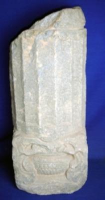 | Description / विवरण | An architectural fragment, part of a pillar. The pillar is circular with a lotus capital which is almost broken. The base of pillar has 4 ghat vallari purna ghat designs on four cardinal directions. Two of them are intact and two are almost rubbed out. |