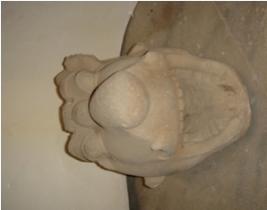 | Description / विवरण | Sculptured architectural fragment depicting a gargoyle Paranala in the shape of a Makara having eyebrows, bulging eyes and teeth which are clearly visible. A part of the forehead of the figurine has been chopped off. |