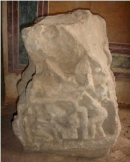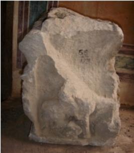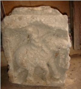 | Description / विवरण | architectural fragment probably a part of a pillar, carved on all four sides. On front side, an elephant is depicted along with a rider. On right of the elephant, a human figure is depicted which is almost mutilated and chopped off and only legs are visible. On the left, an animal figure is depicted which is totally mutilated. On the back side, two female figures are depicted, one of them holding a fan with her hand. |