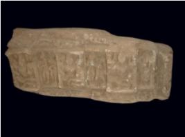 | Description / विवरण | Sculptured architectural fragment of Lintel of a temple depicting three female deities in the niche a horizontal row. There is the depiction of amorous couples and dances in between the niches. No figures can be identified because completely mutilated. |