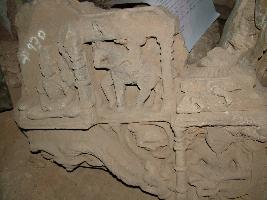 | Description / विवरण | It is a broken sculpture. In left side a male attendant is shown in padmasana posture. At middle top a man is shown at horse. At right side a lying male and standing male over it is shown. |