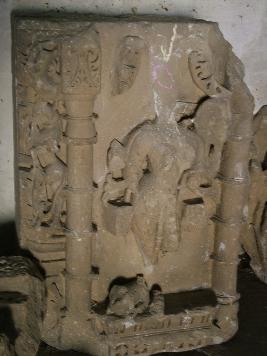 | Description / विवरण | This is an Fragment of Architecture member carved with a female deity, its head and feet are missing. Below it, part of an animal is carved. This figure seems to be a goddess. It is placed inside a niche, besides it a Vyala figure is depicted. |