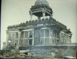 | Description / विवरण | Black and white photograph of Jar Jarina Dholpur. It is a part of fort having jali pattern. |