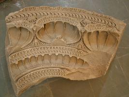 | Description / विवरण | This architectural member is carved with Gajatalu pattern and Kirtimukhas. Beside these, it is carved with floral and wave motifs. The Gajatalu are joined with each other. |