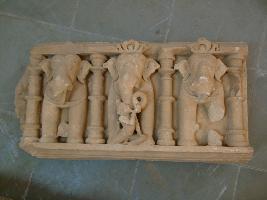 | Description / विवरण | This panel bears three elephants in which the central elephant is being feeded by a man. The elephants are decorated with ornaments. They are shown in different posture. |