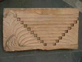 | Description / विवरण | It s carving patterns represent floral design and rectangular blocks. There are number of square cubes connected with each other in a slanting order. |