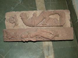 | Description / विवरण | A vyala figure and an Alasya Kanya are carved on this architectural member. The Alasya Kanya is in tribhanga posture with both hands are joint together behind her head. |