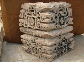 | Description / विवरण | This architectural piece is having three sections. Lower and upper one having floral design and chaitya. Middle section is Amalaka having curved ridges. |