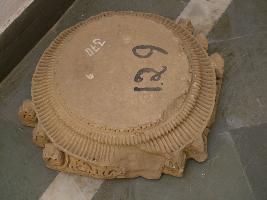 | Description / विवरण | This pillar part is circular in shape. It is carved with floral and vertical parallel ridges, in two parts. The lower one with floral design and above it the leaner lining motif is carved. |