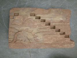 | Description / विवरण | It is a carved piece of some pedestal or pillar. It is carved with floral motifs on one side and is divided in arch shape with square boxes |