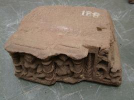 | Description / विवरण | It is an architectural piece having floral designs and two human figures in sitting posture. One of them is in Ardhaparyanka Asana. It has three section. |