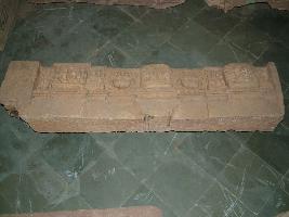 | Description / विवरण | Lower a part of door frame. On it two kirtimukha, one image of Ganesh and two ladies attendants have been carved out. Two male attendants have also been shown in it. The ladies attendants are holding fly whisk. Image of Ganesh have been shown in niches. Besides, these in the middle of it birds figures and floral design can be seen. |