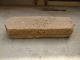 | Description / विवरण | It is carved with cripple and floral motifs in the central part a Kirtimukha is carved. On the other side a floral motif is carved. An inscription is engraved on the other side in Devanagri script. |