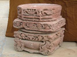 | Description / विवरण | It is a part of a pillar, which is carved with Ghatpallava and Kirtimukhas. The lower part of the pillar is carved with Ghat vase , leaves are hanging from the vase Ghat . Lotus buds are carved on the Ghat. Kirtimukhas are carved above it. Besides these floral and cripple motifs are also carved. |