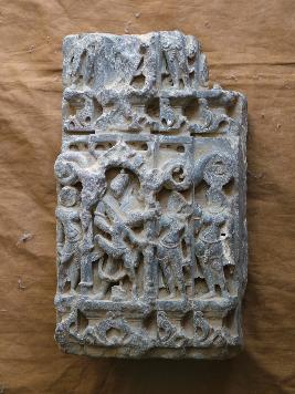 | Description / विवरण | This is a fragment having few figures and an image of a Trinthankara. Among the figures two are females. On the bottom position of it floral patterns carved designs are there. On the upper portion four legs broken part can be seen. |