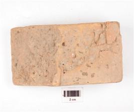 | Description / विवरण | A Rectangular terracotta brick with partly broken and chipped off surface |