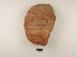 | Description / विवरण | Fragment of a chocolate coloured wall plaster,contains husk pieces and bamboo impression on underside. |