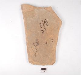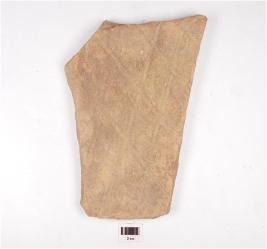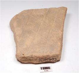 | Description / विवरण | Fragment of a tile terracotta treated with red slip on the exterior, incised design has criss-cross pattern on the outer surface |