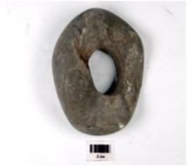 | Description / विवरण | A compass made of sandstone,with four ridges and other side broken. |