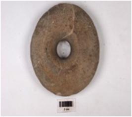| Description / विवरण | An architectural member, made of chert, biconvex shaped and perforated. |