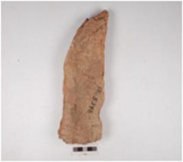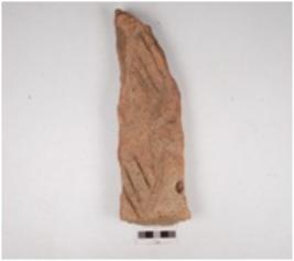 | Description / विवरण | A fragment of red ware tile, having incised criss line on surface. |