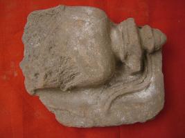 | Description / विवरण | It is a broken terracotta plaque showing a Buddhist relic casket. A covered pot is shown with a ribbon. |