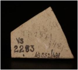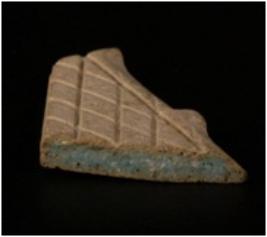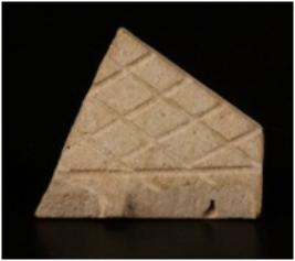 | Description / विवरण | A fragment of a stone tile decorated with incised lines on surface. |
