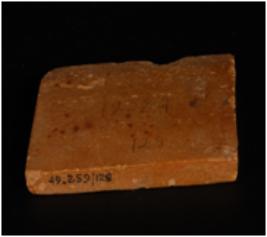 | Description / विवरण | A tile made on sand stone with smooth surface and rectangular in shape. |