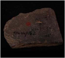 | Description / विवरण | A fragment of a stone slab decorated with incised design on surface. |