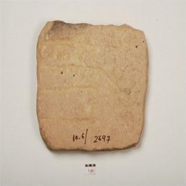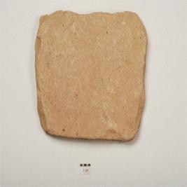 | Description / विवरण | A stone tile rectangular in shape with slightly broken edges, polished surface with rope marks on one side dull red in colour and rectangular in section. |