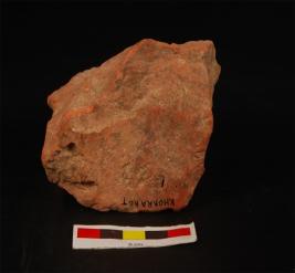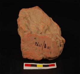 | Description / विवरण | Fragment of terracotta brick, square in shape approximatily. Grooved graphic design on surface. Edges are slightly chipped off and reverse side is broken, red in colour. |