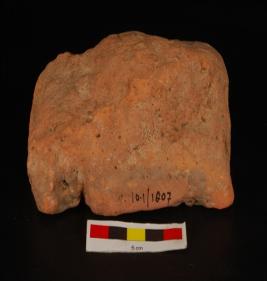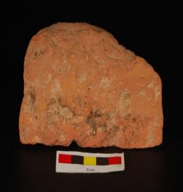 | Description / विवरण | Fragment of terracotta brick dipicting swartika design on surface and deep grooved line. Chipped off from edges, red in colour. |