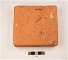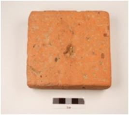 | Description / विवरण | A hand made terracotta brick, well baked and surface is chipped off surface has wash in red colour, husk is presented in clay. |