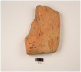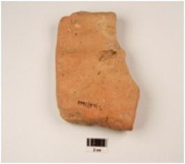| Description / विवरण | A hand made terracotta brick frasment , well baked and grooved surface with dull red wash. |