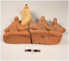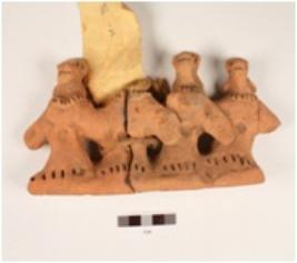 | Description / विवरण | A hand made terracotta panel of four dancing figurine. With grooved head dress and slit mouth, torque on neck and hands or attachd with grooved marks on base, surface has wash in red colour, it is broken also. |