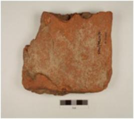 | Description / विवरण | Fragment of a tile of terracotta and treated with red slip. |