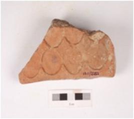 | Description / विवरण | Fragment of a mould made terracotta tile with punch-marked impressions on the surface. |